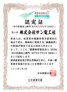 サン電工社は、今後も社員のメンタルヘルス向上に向けた取り組みを継続してまいります。