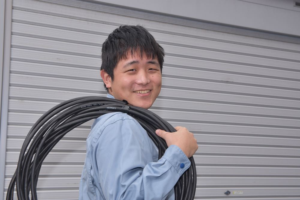 現場作業では、鉄塔の上やビルの屋上等、高所での作業が多く大変なときもありますが工事を完成させた時の達成感があり、とてもやりがいのある仕事です。